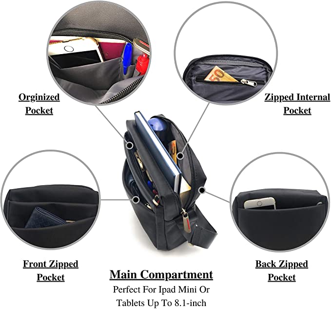 ELIOX Borsello Uomo Tracolla Regolabile per iPad Tablet Fino a 8,5 Pollici Impermeabile Messenger a Spalla per Viaggio Ufficio Lavoro Business e Uso Quotidiano - Nero